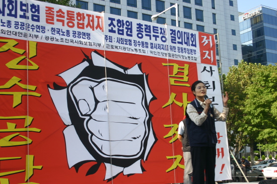 '4´ë »çȸº¸Çè Àû¿ë¡¼öÅëÇÕ ÀúÁö¸¦ À§ÇÑ °øµ¿ÅõÀﺻºÎ'°¡ 10¿ù 6ÀÏ ¿©Àǵµ¿¡¼ '4´ë »çȸº¸Çè Á¹¼ÓÅëÇÕÀúÁö Á¶ÇÕ¿ø ÃÑ·ÂÅõÀï °áÀÇ´ëȸ'¸¦ °³ÃÖÇØ ÀϹæÀû ÅëÇÕÀ» Áï°¢ Áß´ÜÇÒ °ÍÀ» ¿ä±¸Çß´Ù.