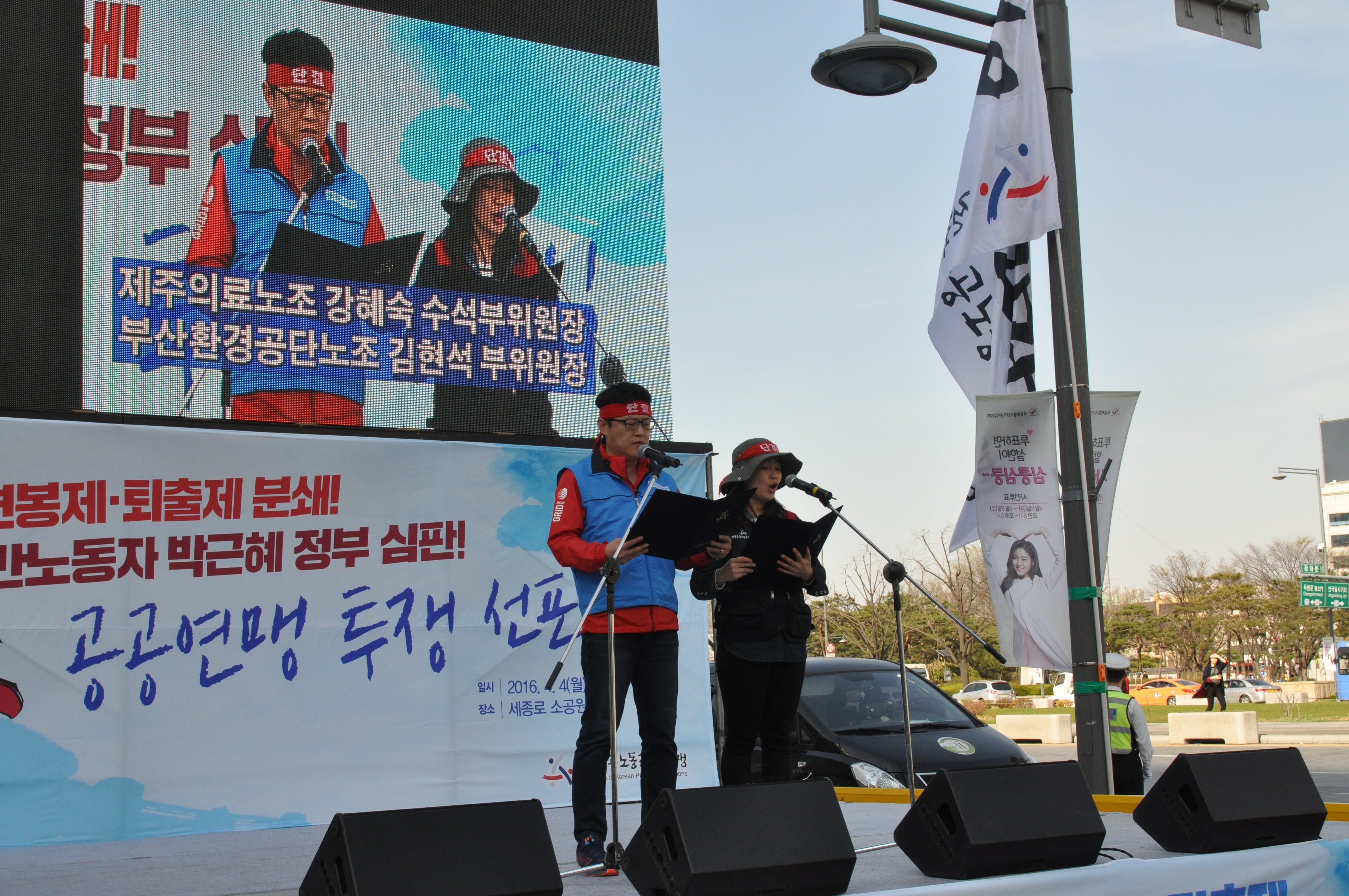 ¿¬¸ÍÀº 4ÀÏ ¼¿ïÁ¤ºÎû»ç ¼¼Á¾·Î¼Ò°ø¿ø¿¡¼ ¡®¼º°ú¿¬ºÀÁ¦¡¤ÅðÃâÁ¦ ºÐ¼â! ¹Ý³ëµ¿ÀÚ ¹Ú±ÙÇý Á¤ºÎ ½ÉÆÇ!¡¯À» ³»°É°í ÃÑ·ÂÅõÀï ¼±Æ÷½ÄÀ» °³ÃÖÇß´Ù. ¿À´Ã ¸ðÀÎ ¿ì¸® ¿¬¸Í ´ÜÀ§³ëÁ¶ ´ëÇ¥ÀÚ ¹× Á¶ÇÕ¿øµéÀº 413ÃѼ±À» ¾ÕµÎ°í ´õ¿í °Å¼¼Áö´Â ¹Ú±ÙÇýÁ¤ºÎÀÇ ³ëµ¿°³¾Ç °ø¼¼¿¡ ¸Â¼, ÇöÀå¿¡¼ ³ëµ¿°³¾Ç½Ãµµ¸¦ ¹Ýµå½Ã ¸·¾Æ³»°Ú´Ù´Â °áÀǸ¦ ´ÙÁö°í 2016³â ¿¬¸ÍÀ» Áß½ÉÀ¸·Î Èçµé¸² ¾ø´Â ÅõÀïÀ» Àü°³ÇÒ °ÍÀ» ¼±Æ÷Çß´Ù. ÀÌÀλó À§¿øÀåÀº ´ëȸ»ç¸¦ ÅëÇØ ¡°ÀϹÝÇØ°í°¡ µµÀԵǸé Àΰ£À» ±â°è·Î ÀÚº»¿¡ ¼Ò¸ðǰÀ¸·Î Ãë±Þ¡±µÉ °ÍÀ̰í, ¡°¼º°ú¿¬ºÀÁ¦°¡ ½Ç½ÃµÇ¸é, °ø°ø¼º ÈÄÅð´Â ¹°·Ð ³ëµ¿ÀÚ¸¦ ÀÚº»ÀÇ ÇϼöÀÎÀ¸·Î ÁÙ¼¼¿ì±â ÅëÇØ Àΰ£´Ù¿î »î°ú Àú³áÀÌ ÀÖ´Â »îÀÌ ÆÄ±«µÉ °Í¡±À̶ó¸ç ¹Ú±ÙÇý½Ä ³ëµ¿°³¾ÇÀÇ ¹®Á¦Á¡À» °æ°íÇß´Ù. ÀÌ À§¿øÀåÀº ³ëµ¿°³¾ÇÀúÁöÅõÀï ½Â¸®¸¦ À§ÇØ ¼º°ú¿¬ºÀÁ¦ ±³¼·±ÇÀ» ¿¬¸Í¿¡ À§ÀÓÇØ ÁÙ °Í°ú, 413ÃѼ±¿¡¼ ¹Ú±ÙÇý Á¤±Ç ½ÉÆÇÀ» À§ÇÑ ÅõÇ¥¸¦ Á¶Á÷ÇÏÀÚ°í È£¼ÒÇß´Ù. À̳¯ Áýȸ¿¡´Â Çѱ¹³ëÃÑ À¯¿µÃ¶ »óÀÓºÎÀ§¿øÀå°ú ¹ÎÁÖ³ëÃÑ °ø°ø¿î¼ö³ëÁ¶ Á¶»ó¼ö À§¿øÀåÀÌ ÇÔ²² ÇØ ¿¬´ëÅõÀïÀ» ¾à¼ÓÇß´Ù. ¹Ú±ÙÇý Á¤ºÎ°¡ ¼±°üÀ§¿Í °í¿ë³ëµ¿ºÎ¸¦ ¾Õ¼¼¿ö ¿ì¸® ¿¬¸Í¿¡ ´ëÇÑ ±¤¹üÀ§Çϰí Áý¿äÇÑ Ç¥Àû ź¾ÐÀ» ÀÚÇàÇßÀ½¿¡µµ ºÒ±¸Çϰí, 300¿©¸íÀÇ ³ëÁ¶´ëÇ¥ ¹× Á¶ÇÕ¿øµéÀÌ Âü¼®ÇØ ¡®°ø°ø³ëµ¿ÀÚ°¡ ¼±ºÀ¿¡ ¼± ³ëµ¿°³¾Ç ÀúÁö ³¡Àå ÅõÀÀÌ ½ÃÀÛµÊÀ» ¼±Æ÷Çß´Ù.