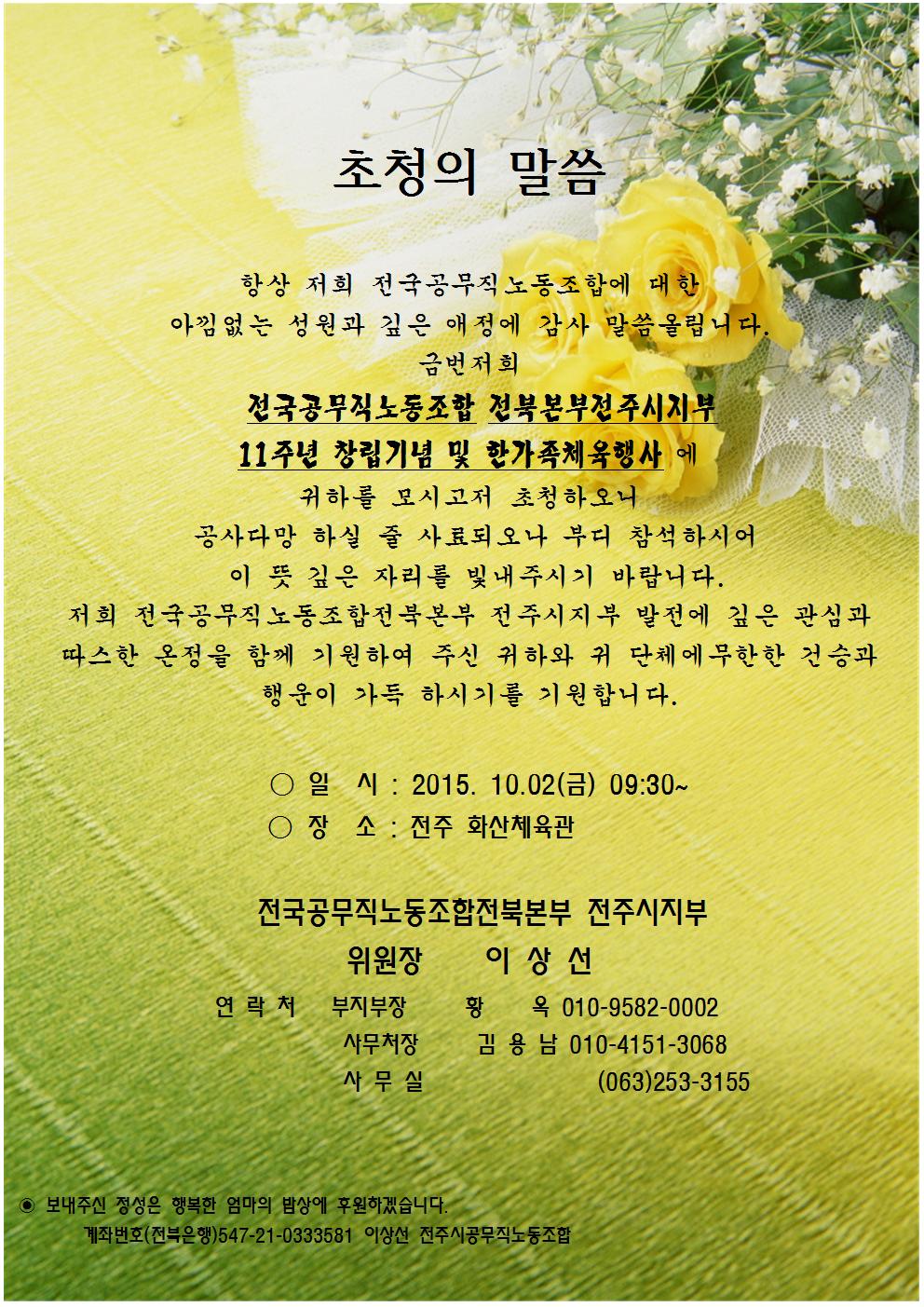 ¡¶ÃÊ´ëÀå¡·Àü±¹°ø¹«Á÷ ³ëÁ¶ ÀüºÏº»ºÎÀüÁÖ½ÃÁöºÎ ⸳ ¹× üÀ°Çà»ç