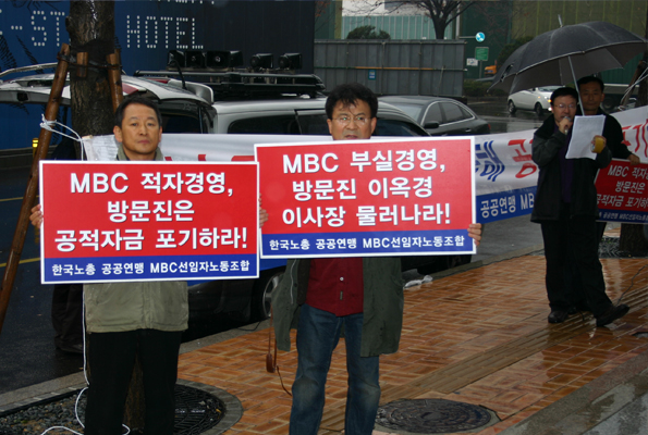 - ¹æ¹®ÁøÀº MBC °æ¿µÁøÀÇ À§Àå ÈæÀڰ濵 ¼úÃ¥À» Áï½Ã ÁߴܽÃŰ°í ±Ý³âµµ °øÀûÀÚ±ÝÀ» Æ÷±âÇ϶ó!