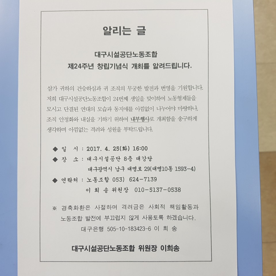 ¡¶ÃÊ´ëÀå¡·´ë±¸½Ã¼³°ü¸®°ø´Ü³ëÁ¶ Á¦ 24ÁÖ³â ⸳±â³ä½Ä
