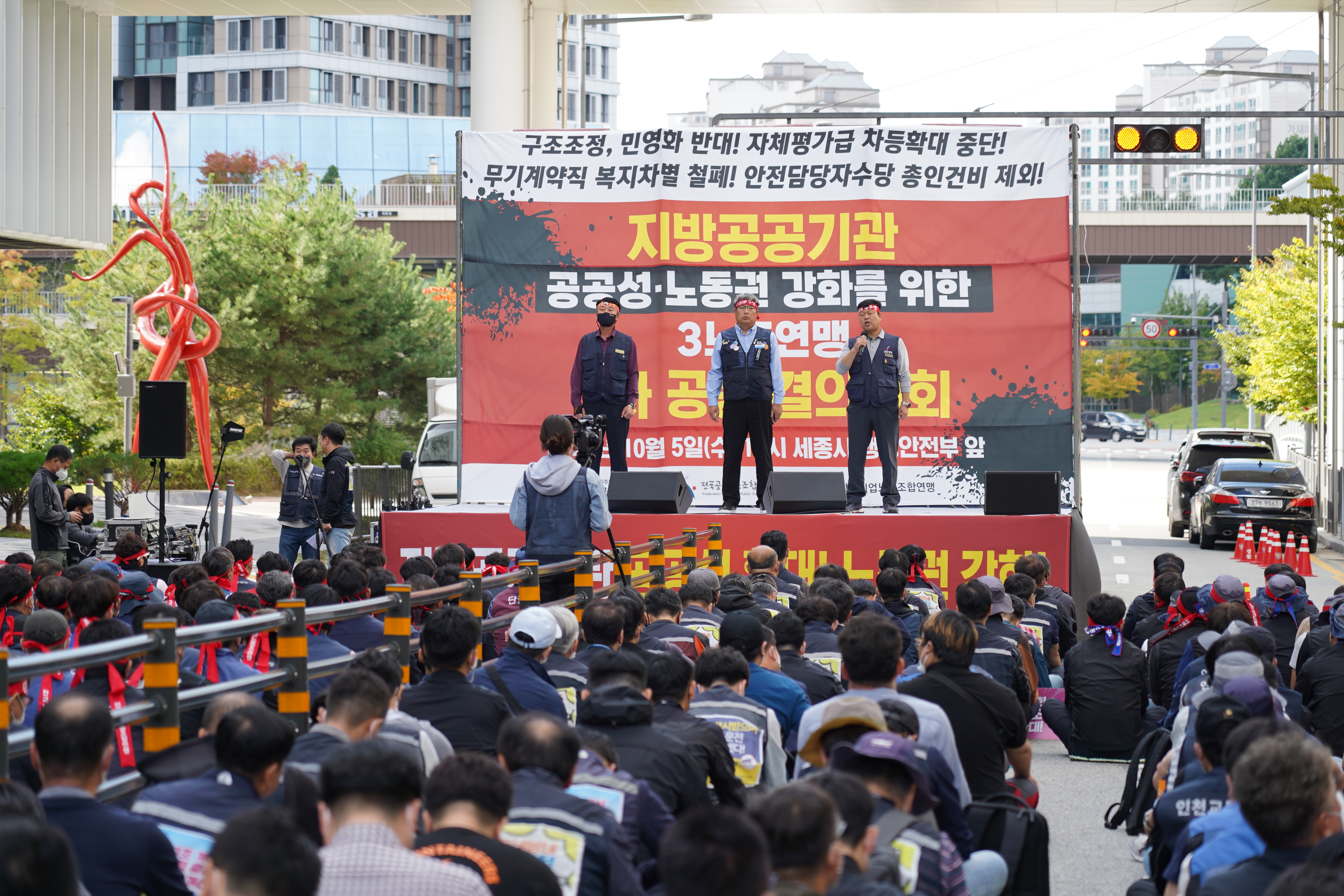 Áö¹æ°ø±â¾÷ ³ëµ¿ÀÚ¸¦ ´ëÇ¥ÇÏ´Â Àü±¹°ø°ø³ëµ¿Á¶ÇÕ¿¬¸Í(À§¿øÀå ·ù±â¼·), °ø°ø¿î¼ö³ëÁ¶, Àü±¹Áö¹æ°ø±â¾÷³ëÁ¶¿¬¸ÍÀÇ 3°³ »êº°³ëÁ¶´Â Áö³ 5ÀÏ(¼ö) ¿ÀÈÄ ¼¼Á¾½Ã ÇàÁ¤¾ÈÀüºÎ ¾Õ µµ·Î¿¡¼ Á¦2Â÷ °áÀÇ´ëȸ¸¦ ¿¾ú´Ù.