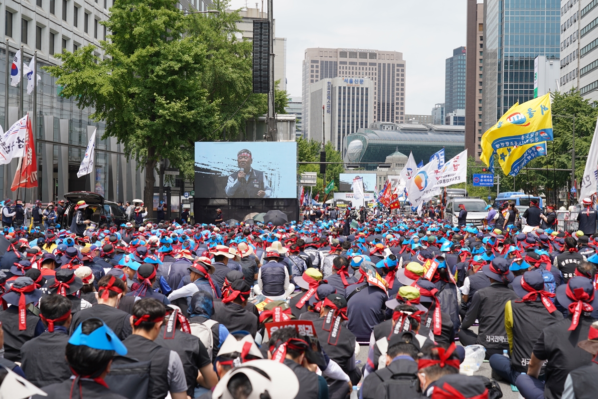 Á¤ºÎÀÇ ³ëÁ¶ ź¾ÐÀÌ °è¼ÓµÇ°í ÀÖ´Â °¡¿îµ¥ ±Ý¼Ó³ë·Ã ±è¸¸Àç À§¿øÀå Æø·Â ¿¬Çà, ±èÁØ¿µ »ç¹«Ã³Àå À¯Ç÷ Áø¾Ð »çÅ µîÀ¸·Î À±¼®¿ Á¤ºÎ¿¡ ´ëÇÑ ºÐ³ë°¡ Æø¹ßÇß´Ù. Çѱ¹³ëÃÑÀº 6¿ù 27ÀÏ(È) ¿ÀÈÄ ¼¿ï ¼¼Á¾´ë·Î¿¡¼ Àü±¹´ÜÀ§ ´ëÇ¥ÀÚ ¹× »ó±Ù °£ºÎ 1¸¸ ¿©¸íÀÌ Âü¿©ÇÑ ‘Çѱ¹³ëÃÑ ³ëÁ¶°£ºÎ °áÀÇ´ëȸ’¸¦ °³ÃÖÇß´Ù.