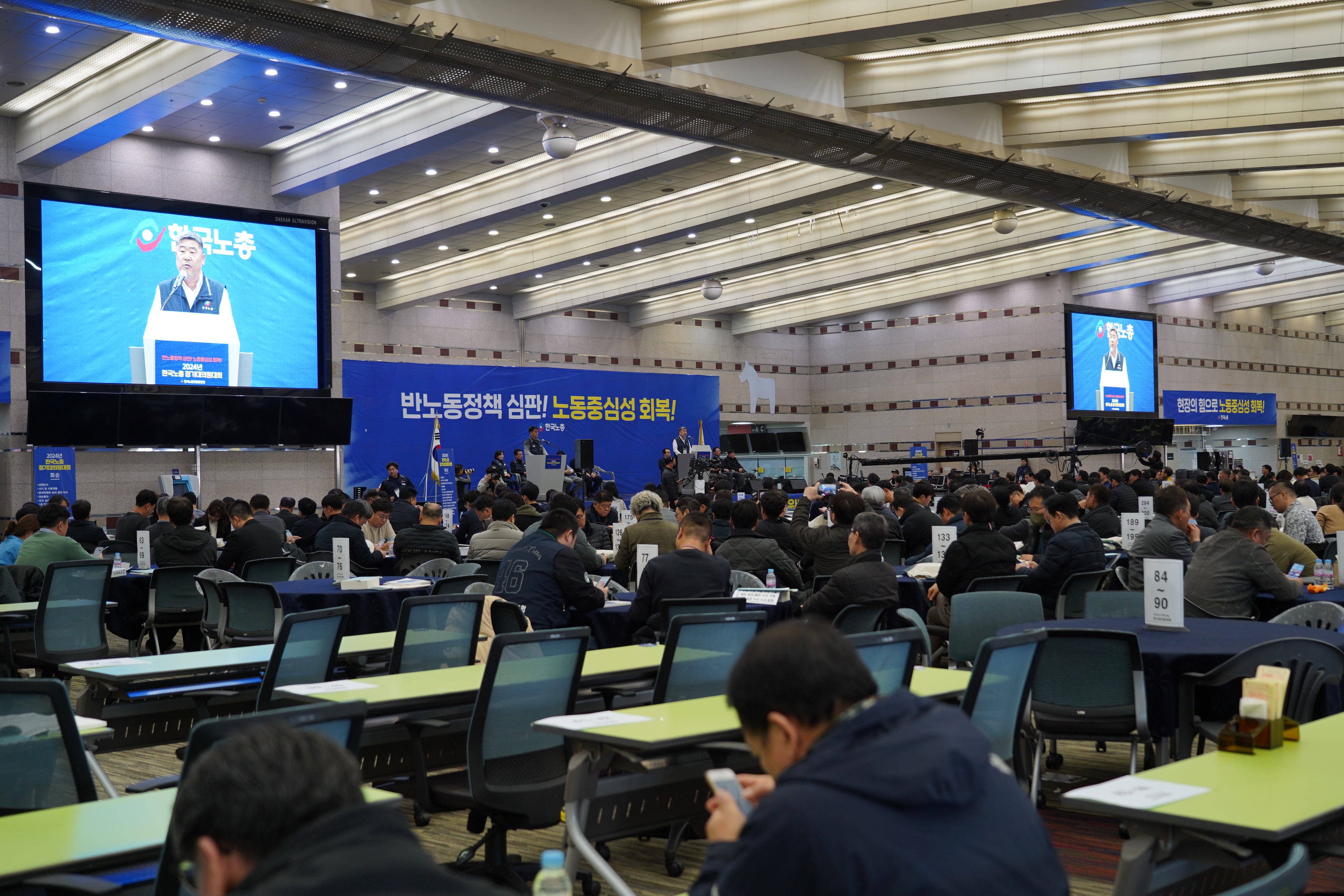 Çѱ¹³ëÃÑÀº ³ëµ¿ÀÚÀÇ °í¿ë¾ÈÁ¤°ú ³ëµ¿±Ç»ç°¢Áö´ë ÇØ¼Ò, Ãë¾à°èÃþ ³ëµ¿ÀÚ º¸È£ µî ³ëµ¿½ÃÀå ºÒÆòµî ÇØ¼Ò¿Í »çȸ°ø°ø¼º °È¸¦ 2024³â ¿îµ¿¹æÇâÀ¸·Î ¼³Á¤Çϰí À̸¦ À§ÇØ »çȸÀû´ëÈ¿Í Á¶Á÷ÅõÀïÀ» º´ÇàÇϴ Ȱµ¿±âÁ¶·Î ¡ãÁÖ4ÀÏÁ¦ µµÀÔ ¹× Àå½Ã°£ ³ëµ¿ ±ÙÀý ¡ãÁ¤³â¿¬Àå ¡ãÃÖÀúÀÓ±Ý Àλó ¹× Á¦µµ°³¾Ç ÀúÁö ¡ãÀÓ±ÝºÒÆòµî ±¸Á¶°³¼± ¡ã»ê¾÷¾ÈÀüº¸°Ç ¿¹¹æ ¹× º¸»ó °È µî 10´ë Á¤Ã¥°úÁ¦¿Í ¡ãÇ÷§Æû·Æ¯°í µî ºñÁ¤±Ô ³ëµ¿ÀÚ Á¶Á÷È ¡ã°ø¹«¿ø·±³»ç³ëÁ¶ 30¸¸ Á¶Á÷È µî Á¶Á÷È®´ë °úÁ¦ ¡ãÇѱ¹³ëÃÑ ´ë±¹È¸·´ëÁ¤ºÎ Çù»ó·Â Áõ´ë ¹× Á¤Ä¡ ¿µÇâ·Â È®´ë¸¦ À§ÇÑ Á¤Ä¡È°µ¿°úÁ¦¸¦ 2024³âµµ¿¡ ÁýÁß ÃßÁøÇÑ´Ù.