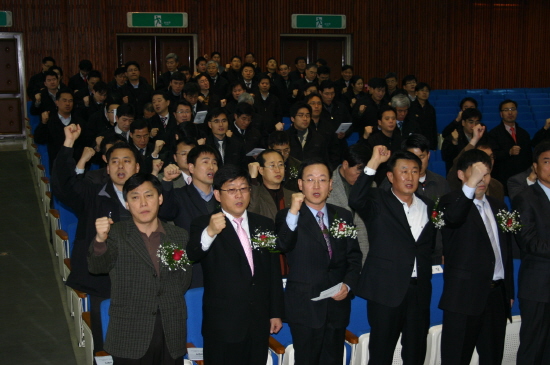 2008³âÀ» °Ç¼³°ü¸®°ø»ç ½Â¸®ÀÇ ¿ø³âÀ¸·Î ¸¸µé¾î ÁÖ±æ ¹Ù¶õ´Ù¡±¸ç ´çºÎÀÇ Àλ縦 ÀüÇß´Ù.