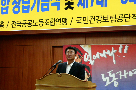 »óÀÓºÎÀ§¿øÀå ¹× ¿¬¸Í ¼Ò¼Ó ´ÜÀ§³ëÁ¶ À§¿øÀå, ±×¸®°í Á¤ÀÇÈ Çѳª¶ó´ç ±¹È¸ÀÇ¿ø, °±âÁ¤ ÅëÇÕ¹ÎÁÖ´ç ±¹È¸ÀÇ¿ø µîÀÌ Âü¼®ÇÏ¿© ³ëÁ¶ÀÇ Ã¢¸³±â³ä½Ä°ú
