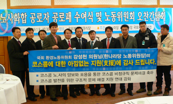 (ÁÖ)ÄÚ½ºÄÞÀÌ ÇÔ²² ³ë·ÂÇÏ¿© ÇØ°áÇÑ °Í¿¡ ´ëÇÏ¿© Çѳª¶ó´ç ³ëµ¿À§¿øÈ¸¿¡¼ ±× °ø·Î¸¦ ³ôÀÌ »ç¼ ¼ö¿©ÇÏ°Ô µÇ¾ú´Ù.