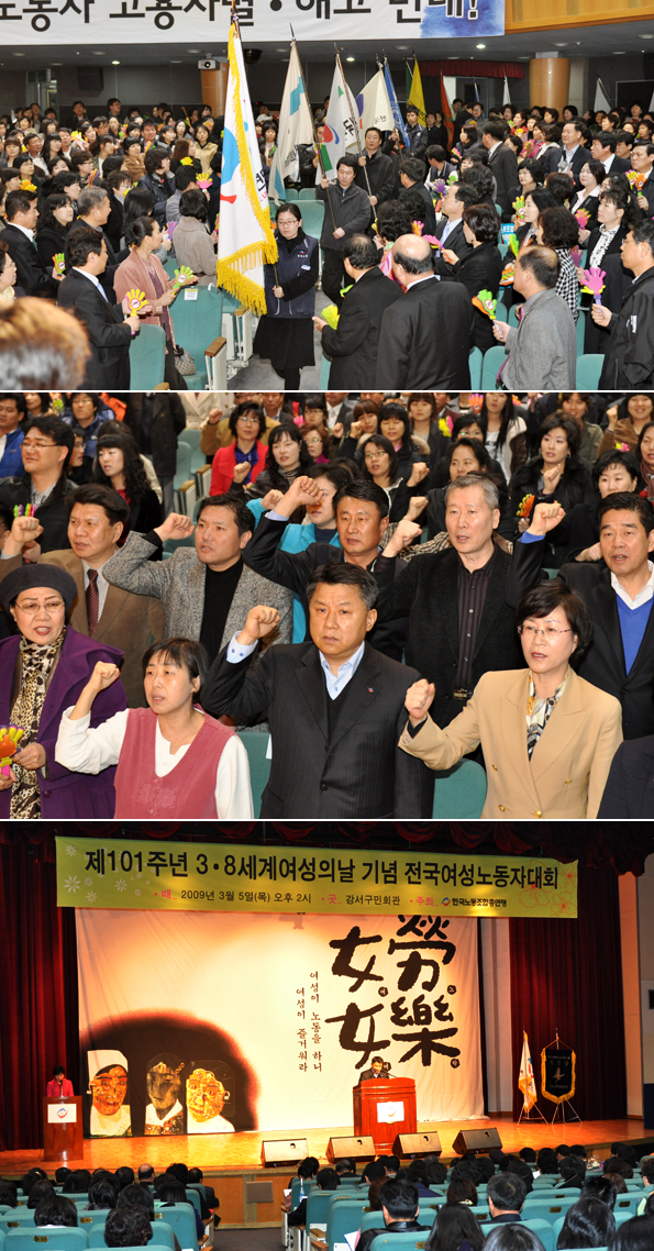 ¿ÃÇØ·Î Á¦101ÁÖ³âÀ» ¸Â´Â 3.8 ¼¼°è¿©¼ºÀÇ ³¯À» ±â³äÇÏ¿© Çѱ¹³ëÃÑ Àü±¹¿©¼º³ëµ¿ÀÚ´ëȸ°¡ 2009³â 3¿ù 5ÀÏ(¸ñ) 14½Ã 1,000¿©¸íÀÇ Á¶ÇÕ¿øÀÌ Âü¼®ÇÑ °¡¿îµ¥ °¼±¸¹Îȸ°ü
