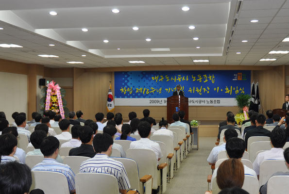 ³ëµ¿Á¶ÇÕÀÌ 2009³â 9¿ù 1ÀÏ(È) ⸳ Á¦12ÁÖ³â Çà»ç¿Í ÇÔ²² ³ëµ¿Á¶ÇÕÀ§¿øÀå ÀÌ¡¤ÃëÀÓ½Ä(Á¦4´ë:±èÁ¤È£, Á¦5´ë:ÀÌÀç»ï)À» ´ë±¸±¤¿ª½Ã¼ÒÀç