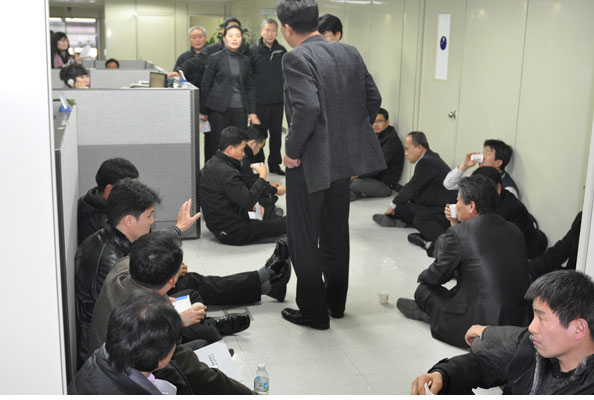 ºÒ±¸Çϰí À̹ø °áÀdz»¿ë¿¡ ¸¸Á·ÇÏÁö ¸øÇÑ ¾à30¿©¸íÀÇ ÀÇ¿øµéÀº ¾à 30ºÐ¿©ºÐ µ¿¾È Çѱ¹³ëÃÑ ÁýÇàºÎ¸¦ Á¡°ÅÇϰí, ¡°12/4 ³ë»çÁ¤ ÇÕÀǹ®Àº ³ëÁ¶¸¦