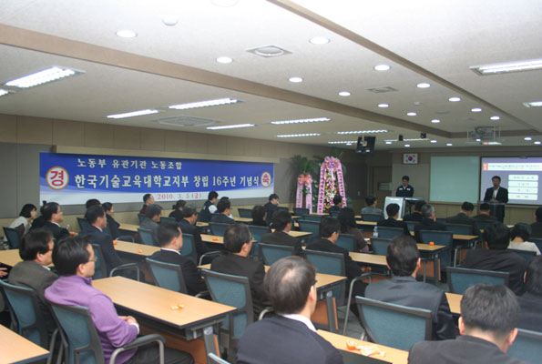³ëµ¿ÇàÁ¤¿¬¼ö¿ø ¼ÛºÀ±Ù ¿øÀåÀÇ Ãà»ç¸¦ ³¡À¸·Î Çѱ¹±â¼ú±³À°´ëÇб³(±¸ ³ëµ¿±³À°¿ø) ³ëµ¿Á¶ÇÕ Á¦16ÁÖ³â ⸳±â³ä½ÄÀ» ¸¶ÃÆ´Ù.