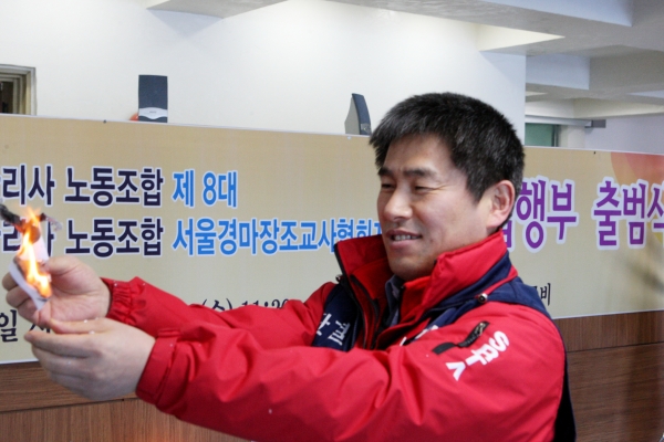 ¸¶Çʰü¸®»ç ³ëµ¿Á¶ÇÕ Á¦8´ë ÁýÇàºÎ Ãâ¹ü½ÄÀÌ Áö³ 1¿ù 12ÀÏ ¼¿ï°æ¸¶°ø¿ø ³» °ü¸®»ç ¼÷¼Ò 1Ãþ ·Îºñ¿¡¼ ¿·È´Ù.