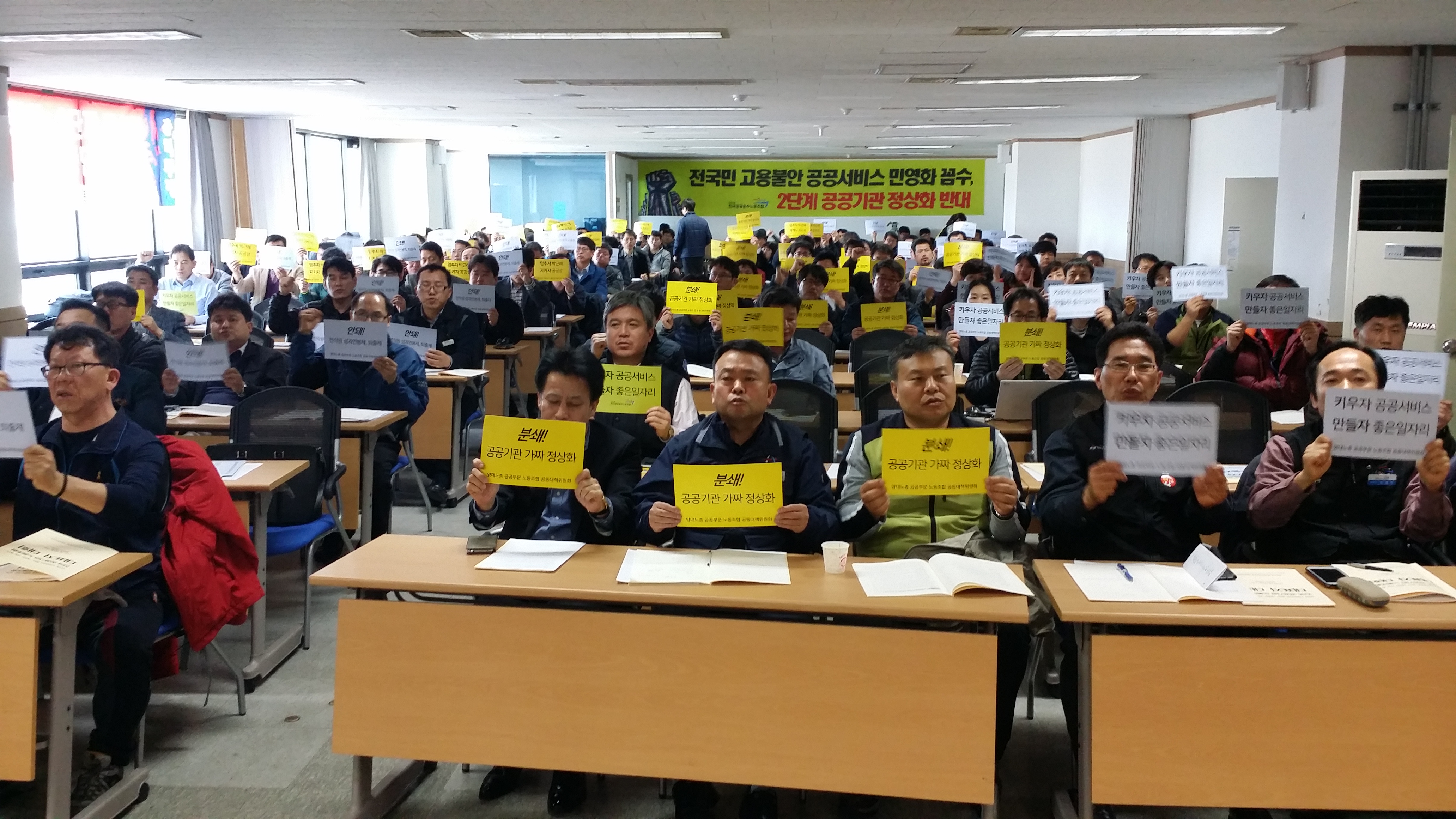 23ÀÏ ¾ç´ë³ëÃÑ °ø°øºÎ¹® ³ëµ¿Á¶ÇÕ °øµ¿´ëÃ¥À§¿øÈ¸(ÀÌÇÏ °ø´ëÀ§)´Â ¡®Àü±¹°ø°ø±â°ü³ëµ¿Á¶ÇÕ ´ëÇ¥ÀÚ È¸ÀÇ¡¯¸¦ °³ÃÖÇÏ°í ¹Ú±ÙÇý Á¤±ÇÀÇ 'Á¦ 2Â÷ °ø°ø±â°ü Á¤»óÈ ´ëÃ¥' ¹Ý´ë¸¦ À§ÇÑ ½ÇÁúÀû ¿¬´ë ¹× ÅõÀï Àü·«À» ¸ð»öÇÏ´Â ÀÚ¸®¸¦ °¡Á³´Ù. À̳¯ ÀÌ ÀÚ¸®¿¡´Â ¹«»ó±Þ °ø°ø±â°ü ³ëµ¿Á¶ÇÕÀ» Æ÷ÇÔÇØ 150¿©°³ ±â°üÀÇ ³ëµ¿Á¶ÇÕ ´ëÇ¥ÀÚ°¡ Âü¿©Çß´Ù.
